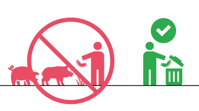 – Ne jamais jeter de restes alimentaires contenant du porc dans la nature.